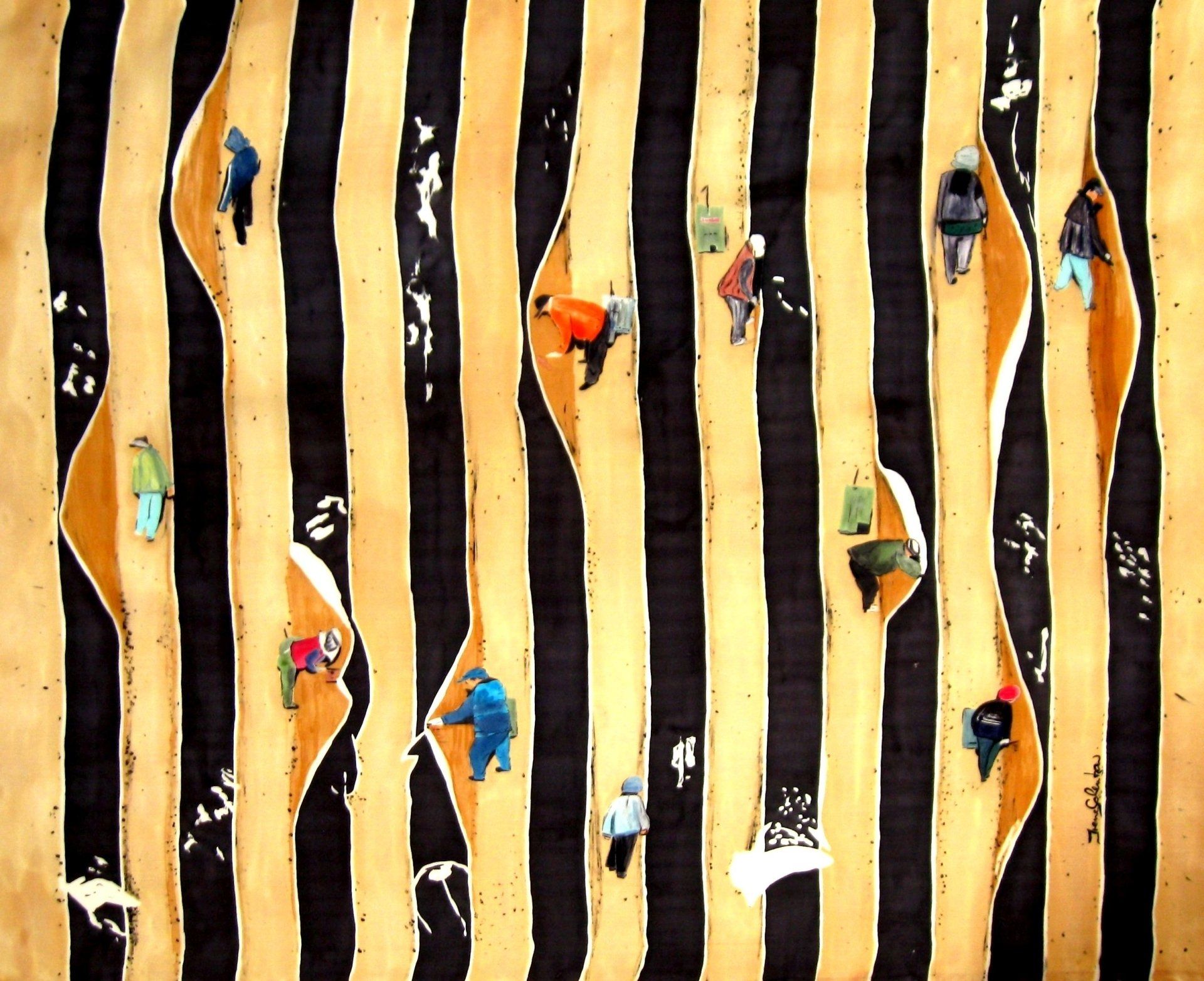 Wiederentdeckung historischer Seidenmaltechniken wie asiatischer Seidenbilder und deren Umsetzung in die Moderne.