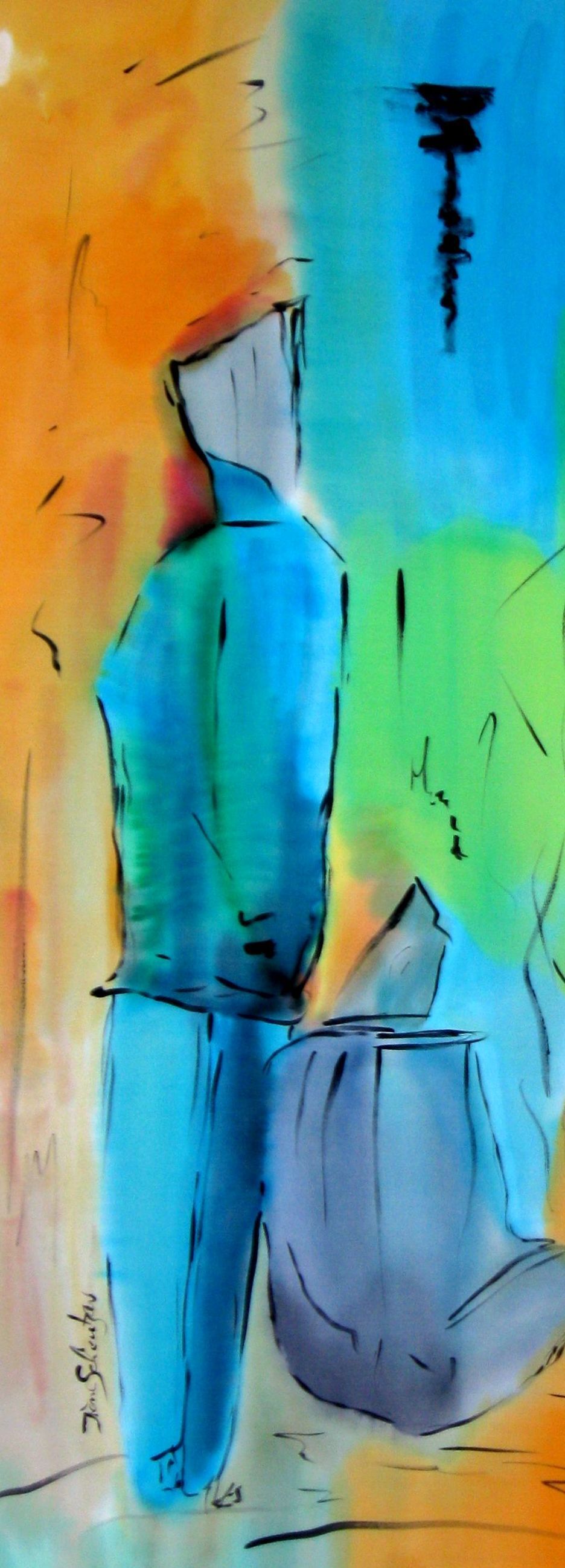 Beim gegenseitigen Abtasten und kennen lernen treffen Boban und ich auf viele gemeinsame Schnittpunkte. Er führt mich in seiner Kunst- und Zeichenschule über Tusche und Graffit zu Acrylfarben und Pastell-Ölkreiden.